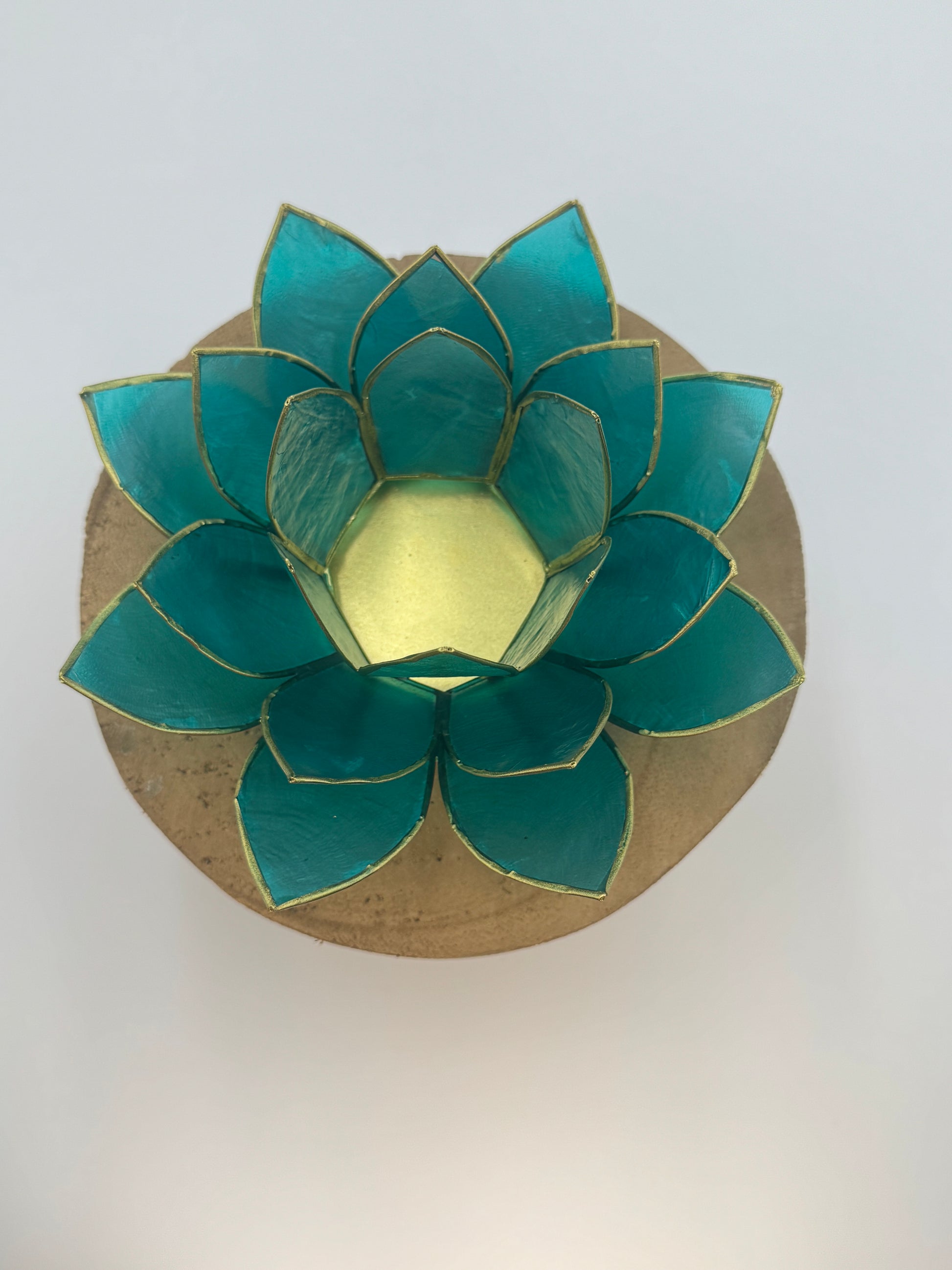 Capiz is the outer shell of a marine mollusk and can be found in the shallow coastal waters of the Philippines. The shells are gathered from the water and then dried to open the shells. Empty shells are soaked in freshwater and then scraped to produce the desired luster. Each piece has its own individual beauty and color that are only enhanced once the tea light candle is lit and in place.